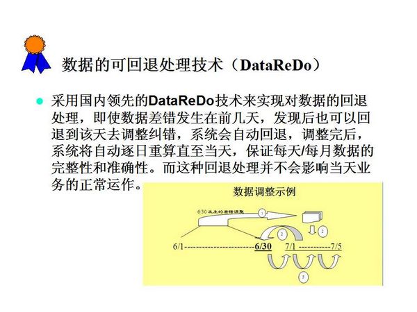 采用國際上先進的日閉局處理&DataReDo設(shè)計概念、可完全解決系統(tǒng)時效性同數(shù)據(jù)有效性的矛盾。 |